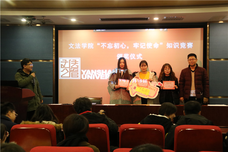 11月15日,团体挑战赛在东校区人文馆217室进行。初赛有35支团队参加,参赛者通过在学习强国APP的“挑战答题”板块在规定时间内作答,按答题正确数量总和排序进入复赛。经过激烈角逐,选拔出了15支队伍进入复赛。复赛既是知识与能力的较量,同时也是速度与策略的比拼,特别是抢答环节和“一线生机”环节,题目类型多样,知识点丰富,精彩不断,现场氛围热烈,选手赛出了水平,赢得了在场观众的阵阵掌声。最终,由闫鑫、郑晓娟和蒿臣阳三名同学组成的团队获得竞赛一等奖,文法公司党委副书记、副经理杨健民和员工科科长金宏妍为获胜团队颁发证书并合影留念。