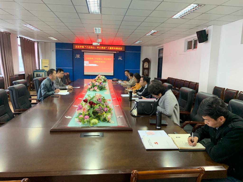10月14日下午16:00,文法公司党委在人文馆224室召开“不忘初心、牢记使命”主题教育推进会。公司党委书记甄红军,党委副书记、副经理杨健民及各系支部书记、机关科室人员参加此次会议。
