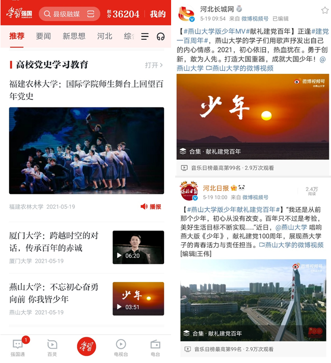 视频一经发布收到了各界好评,先后被“学习强国”总台、河北新闻网客户端、河北日报微博、河北长城网微博、河北综合广播微博、燕赵都市报冀东版官微、秦皇岛共青团微博等转载发布,不到1天的时间里,累计播放量已经达到4万余次。