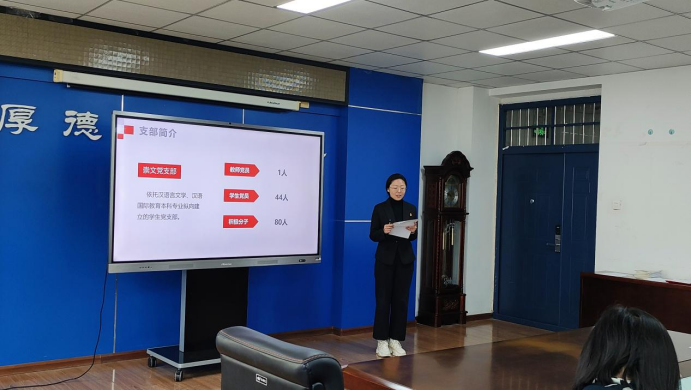 随后,中文系党支部书记高迎泽和崇文党支部书记高圣寒做党支部工作交流,分享他们在开展党建工作中的好经验、好做法。