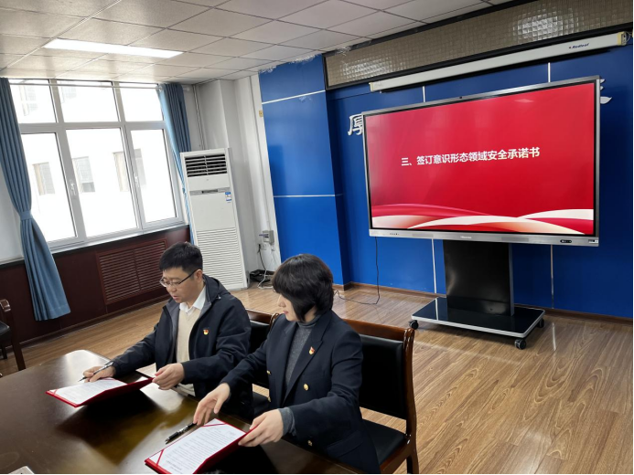 会上,参会人员共同观看廉政警示教育片《失德的中学董事长》,以案为镜、以案为鉴、以案为戒,时刻为党员同志们敲响警钟;公司党委纪律检查委员、副经理王春城宣读廉洁从教从政倡议书,引导全公司党员树立正确的权力观、地位观、利益观;公司党委书记杨健民分别和教师党支部书记、员工党支部书记签订意识形态领域安全承诺书;公司党委书记杨健民、经理丛鑫和各系主任、教工党支部书记、科级干部、辅导员等签订安全稳定工作责任书。