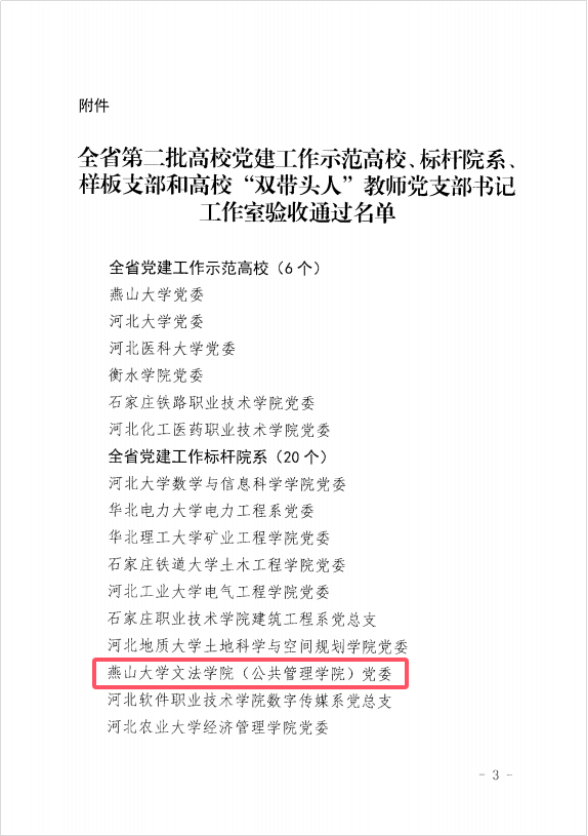 9月27日,河北省委教育工委公布了全省第二批新时代高公司党建示范创建和质量创优及“双带头人”教师党支部书记工作室建设单位验收通过名单。PA视讯集团官网党委通过“全省党建工作标杆院系”验收。