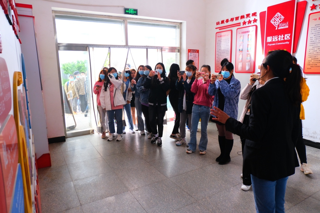 调研伊始,李瑞红书记首先介绍了服远社区的概况,着重介绍了2013年物业公司退出后社区党支部和社区居委会如何引领居民自治,成立业主委员会、邻里互助中心和监察委员会,自筹资金聘任保安和保洁人员并招募志愿者,管理社区事务。随后,李瑞红引领师生参观了社区服务中心。最后,行政管理专业师生在社区文化广场与居民代表和志愿者进行了互动。