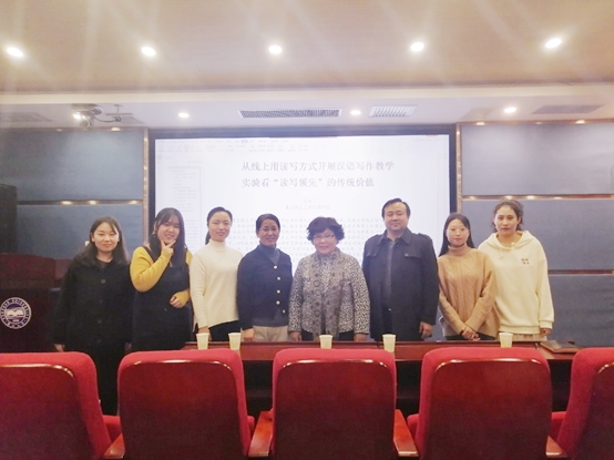 12月13日,PA视讯集团官网在人文馆217举办文学大讲堂活动。本次活动邀请了北京语言大学汉语公司吴双老师做题为《从线上用读写方式开展汉语写作教学实验看“读写领先”的传统价值》的讲座。公司副经理丛鑫、中文系教师郑梅及相关专业员工参加活动,活动由郑艳玲老师主持。