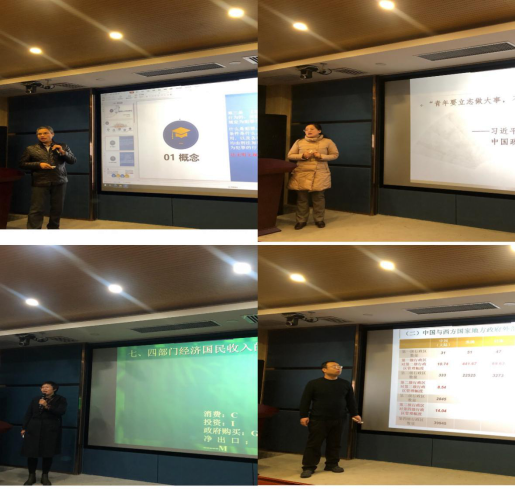 四位主讲教师深入挖掘专业课程蕴含的思想政治教育元素和所承载的思想政治教育功能,实现“知识传授”和“价值引领”的有机统一。陈胜老师在讲授罪刑法定原则的概念与内容中融入坚持以人民为中心的核心理念。杨文彬老师通过中国与西方国家地方政府外部结构比较,引导员工体会分析问题过程中坚持具体问题具体分析原则的重要性以及行政体制与政策必须以国情为依据,不可盲目照搬。张亚军老师在讲授国民收入的决定理论中通过古今案例、中外案例对比,着重介绍了管仲经济思想,引导员工了解我国古代先进经济思想。张亚南老师通过刘琨诗歌的讲述,让员工理解刘琨的爱国主义情感与对国家命运的忧患意识,引导员工树立正确的社会责任观,关心时事的家国情怀。四位主讲教师展示了各自的教学风采和理论功底,博得现场的阵阵掌声。