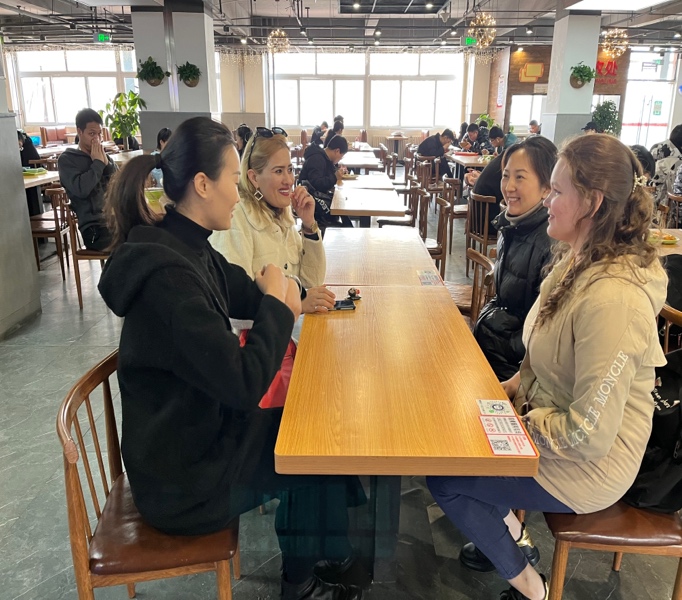 (苏沐娴和阿丽雅在食堂偶遇老师)