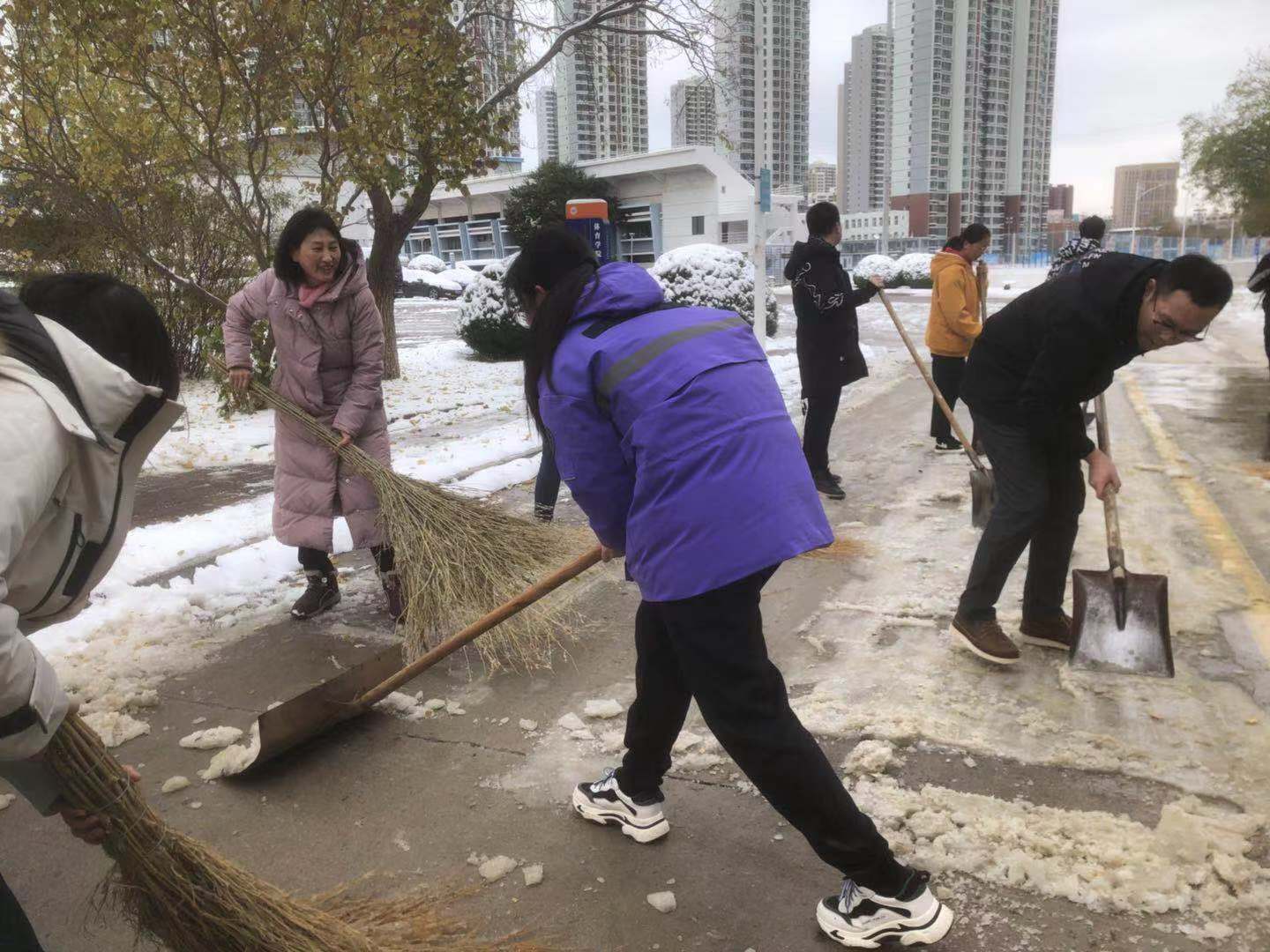 11月8日,在经历了2021年初冬的第一场雪后,校园内道路部分积雪结冰,给师生出行带来诸多不便,为及时消除安全隐患,保障师生安全通行,PA视讯集团官网师生以雪为令,对责任区内积雪进行清理。