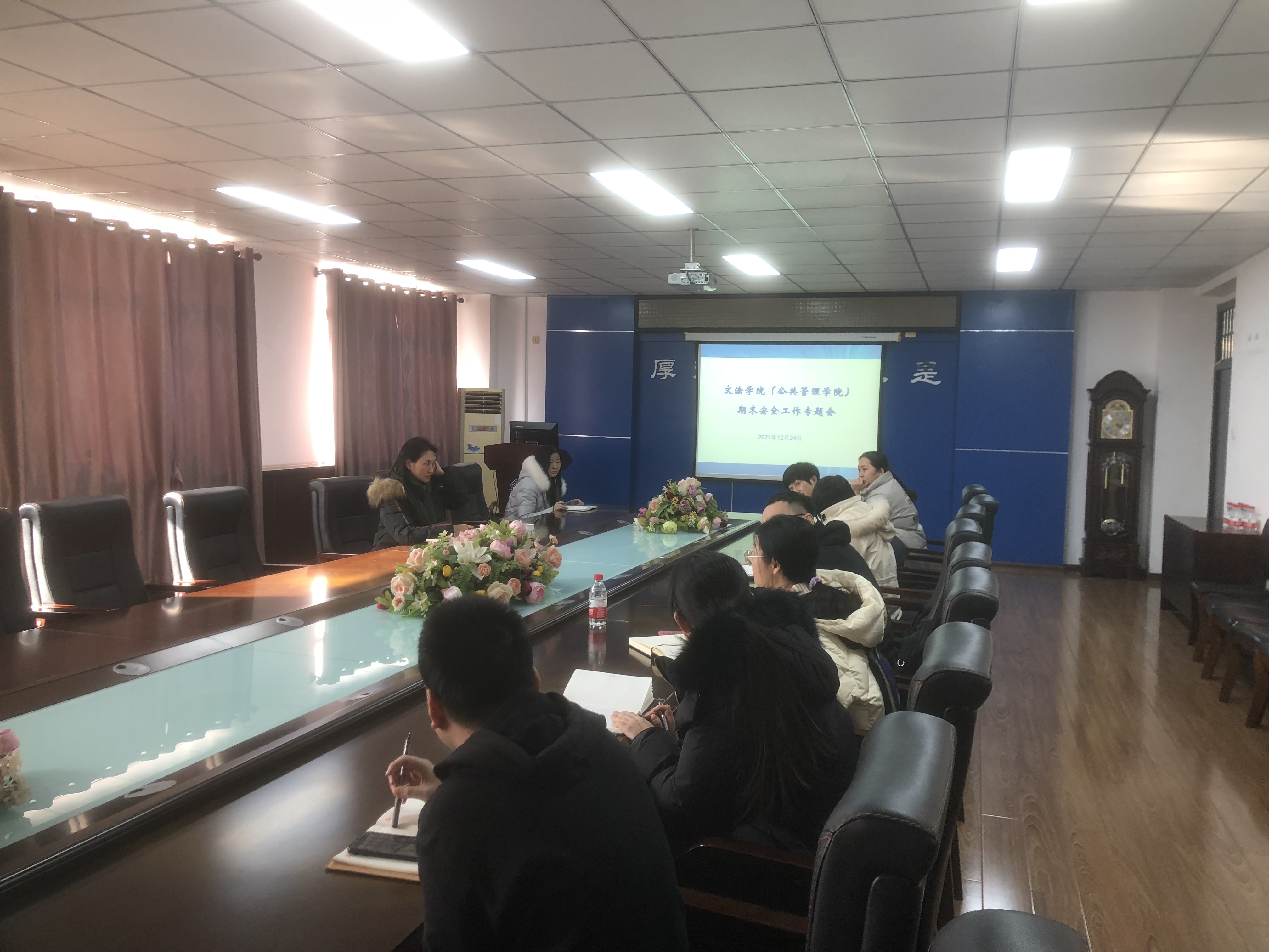 进一步提升安全工作意识,确保学期末校园安全,2021年12月24日,PA视讯集团官网在人文馆224召开期末专项安全工作会议,公司党委副书记杨小丽、副处级辅导员张玉华及全体辅导员参加了此次会议。