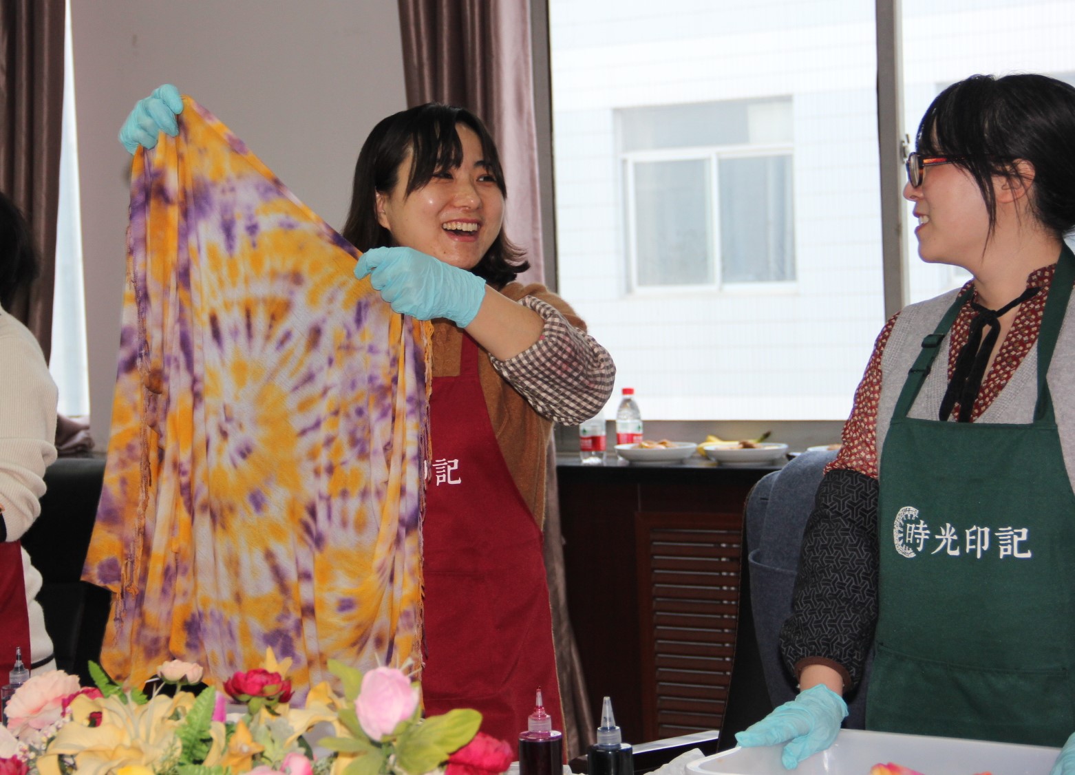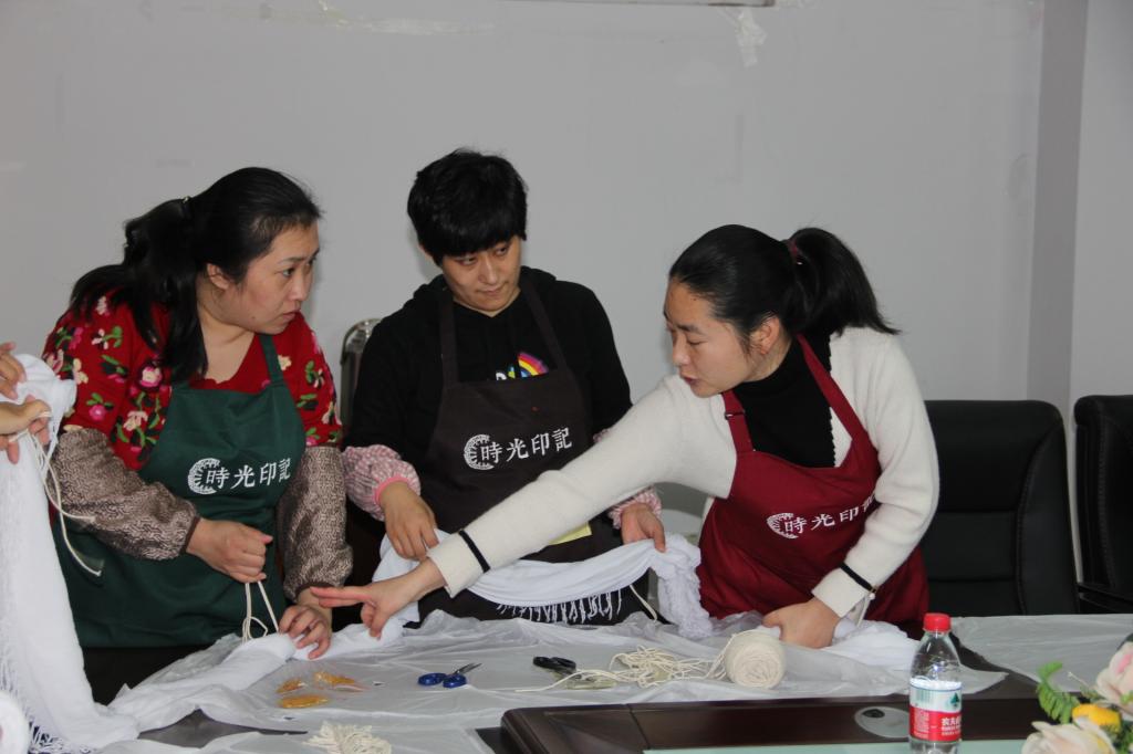 座谈会结束后,进入手工制作培训环节,公司邀请专业人员带领大家制作团扇和扎染,并进行了成果展示,老师们在制作过程中笑语不断,享受手工的乐趣。