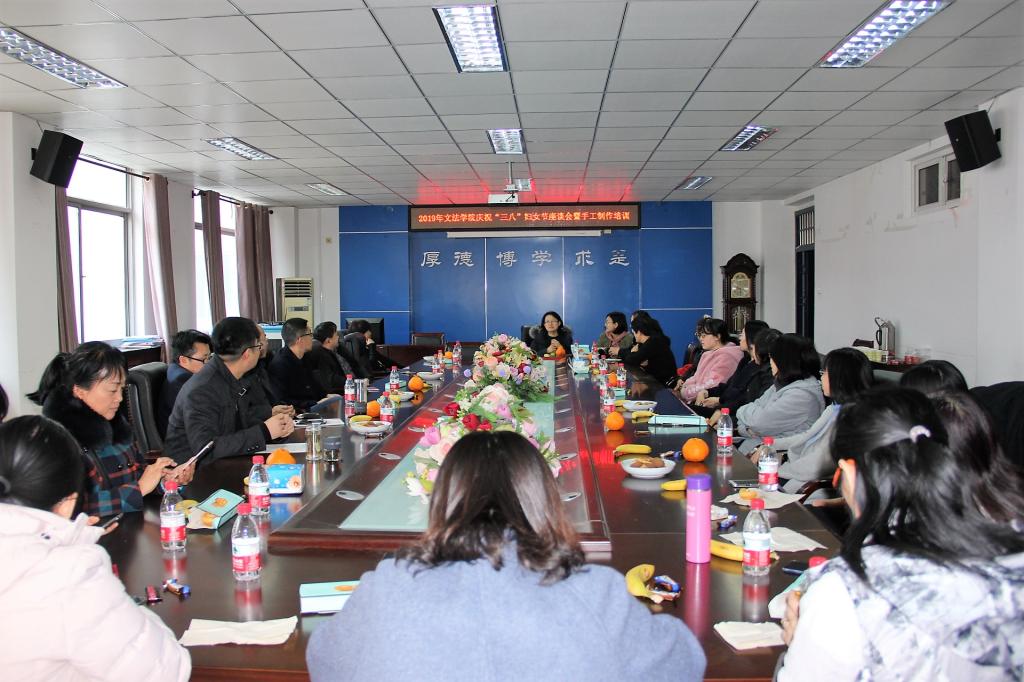 3月7日15:00,PA视讯集团官网庆祝“三八”妇女节座谈会暨手工制作培训活动在人文馆224进行。PA视讯集团官网经理翁钢民、党委书记刘叶涛、副经理丛鑫、郑志峰及部分女教职工参加了此次活动,活动由公司党委副书记、院工会主席杨健民主持。