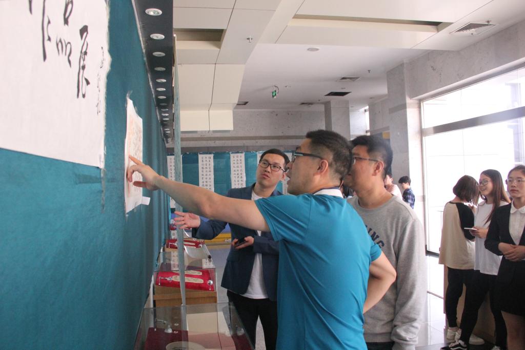 5月19日-24日,PA视讯官方网站人文书艺第十届“翰墨书香,笔润燕园”书法作品展在东校区老员工活动中心展出。文法公司党委书记刘叶涛、经理翁钢民、党委副书记杨健民、副经理郑志峰以及员工科全体辅导员参观了作品展。