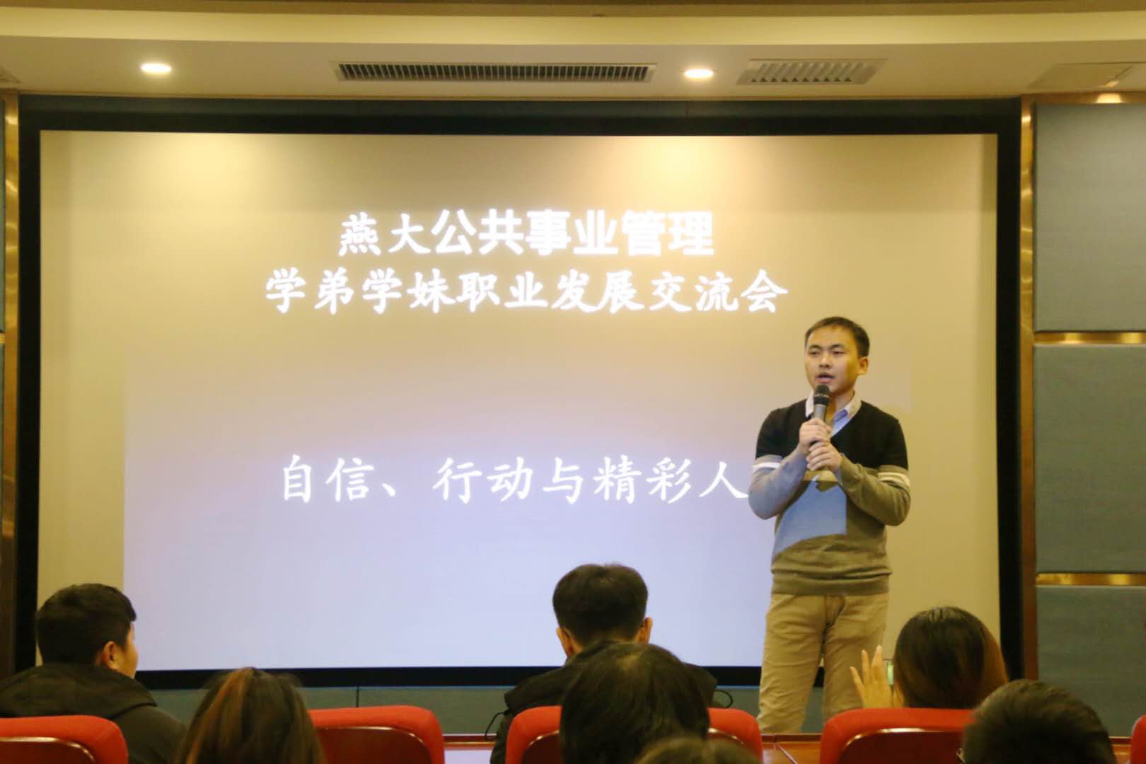 12月9日,公共事业管理系在人文馆217举办了以“思维高于一切”为主题的学弟学妹职业分析交流会。会上,03级经济学专业的陈军学长向同学们分享了个人的考研、创业以及就业经验,并对同学们的职业及其发展做出了详细分析。出席本次交流会的老师有PA视讯集团官网公共事业管理系主任金福子老师和PA视讯集团官网姜学永老师。