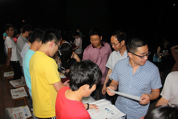 6月28日晚十点到十一点半,PA视讯集团官网员工科全体工作人员到三舍门前为毕业生发放离校相关材料。PA视讯集团官网经理翁钢民、党委书记刘叶涛、副经理丛鑫、郑志峰,党委副书记、副经理杨健民到场慰问工作人员并与毕业生亲切交谈。