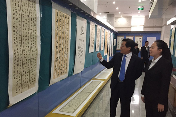 5月7日晚,公司党委书记孟卫东、董事长刘宏民等领导亲临书法展现场,认真观看了每件书画作品,与同学们亲切交流,并对书法爱心义卖所得捐赠儿童福利院的善举给予了肯定与赞赏。孟卫东书记为本次书法展活动现场题词,鼓励同学们努力钻研中国博大精深的书法文化,为宣扬传承中国传统文化做出应有的贡献。现场师生受到极大的鼓舞,纷纷表示将会刻苦练习,修身养性,将书法爱好坚持下去。