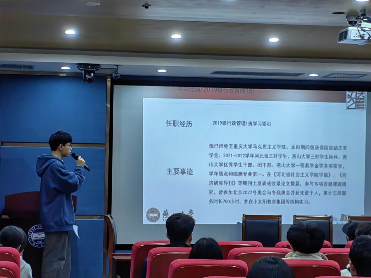 本期“燕鸣有约”以“大学学业该怎么规划,听听保研‘学霸’怎么说”为主题,邀请了19级法学专业赵英坊、19级行政管理专业文宇杰、19级汉语言文学专业李淑楠、19级公共事业管理张继尧等四位已成功推免研究生的“学霸”,现场和同学们交流学习心得,分享学业规划经验。