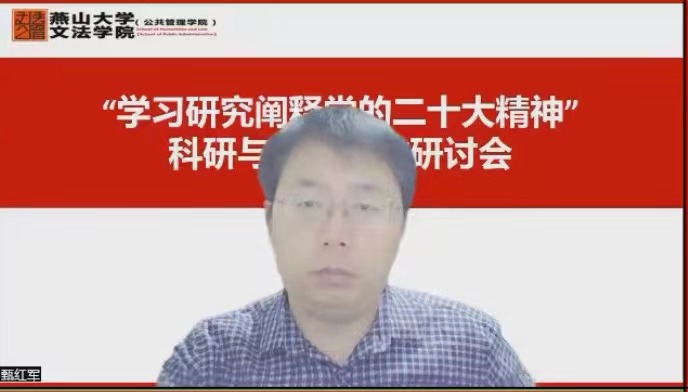 会议首先由各省级、校级人文社科研究机构负责人就如何学习研究阐释党的二十大精神做了主题发言。刘邦凡教授、刘立霞教授、丛鑫教授、杨文华教授、迪莉娅教授、王春城教授、陆洲教授、徐敏副教授、佟林杰副教授等各位专家,聚焦二十大报告中习近平总书记关于“中国式现代化”“高质量发展”“建设社会主义文化强国”“加快建设农业强国”“全面推进乡村振兴”“建设宜居宜业和美乡村”“加快建设网络中国、数字中国”“坚持全面依法治国,推进法治中国建设”“促进区域协调发展”等方面的重要论述,结合各人文社科研究机构的组织建设、科学研究、社会服务、人才培养等方面的工作,汇报了各自的建设现状与发展构想,并就整合组建科研团队开辟新的研究方向、聚焦党和国家重大战略申请国家重大课题、加快推进建言咨政服务国家和区域经济社会发展等重点工作做了深入的分析。
