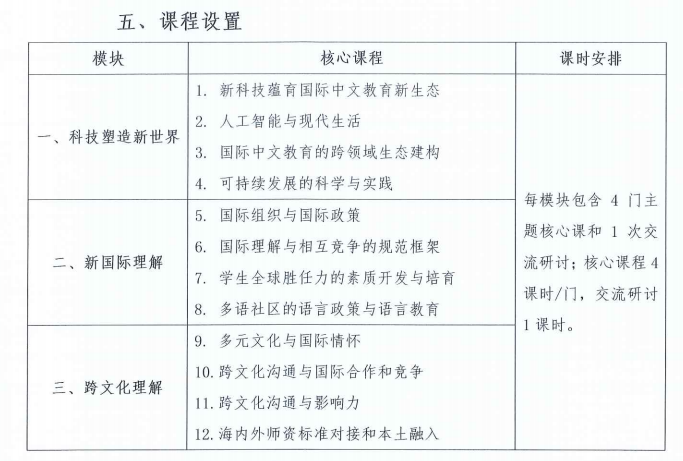 “国际胜任力专题研修项目”是面向汉语国际教育专业学位研究生教育一线骨干开展的专题研修项目,旨在帮助研究生教育一线管理、教学骨干开拓视野、打破本位局限,在全球化、新科技发展宏观背景下,深化对新时代国际中文教育的思考和认识。本次研修项目包括“科技塑造新世界”、“新国际理解”和“跨文化理解”三大课程模块,总计51学时,由新加坡国立教育公司组织相关领域知名专家学者主讲。参训人员完成课程后可获得新加坡国立教育公司颁发的专项课程证书。