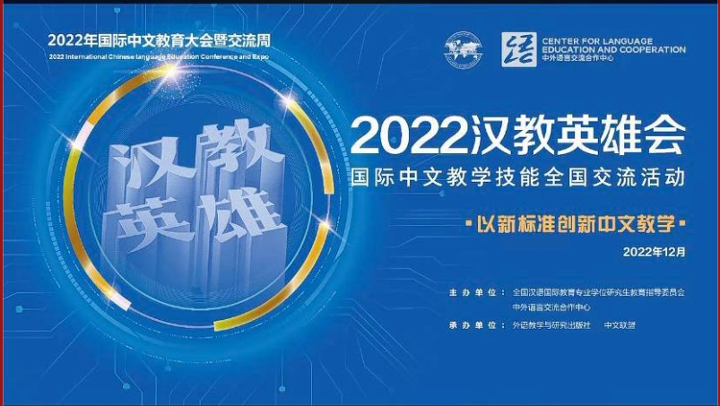 2022年12月21—22日,由全国汉语国际教育专业学位研究生教育指导委员会、中外语言交流合作中心主办,外语教学与研究出版社、中文联盟共同承办的2022“汉教英雄会”国际中文教学技能全国交流活动在线举行。