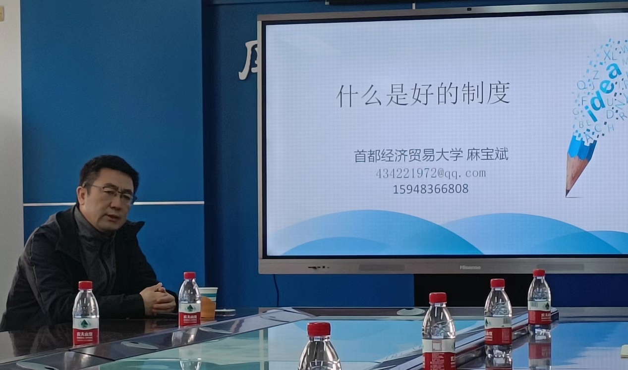 公司党委书记甄红军对麻宝斌教授带来的精彩讲座表示感谢,并指出,公司在今后的工作中将进一步着眼长远性和全局性,把制度建设作为一项重点工作,建立健全各种管理规则、监督机制和保障体系,实时跟踪制度实施情况,增强制度的系统性、科学性、有效性,以制度保证公司管理与运行的规范化和程序化,持续提升公司治理能力。