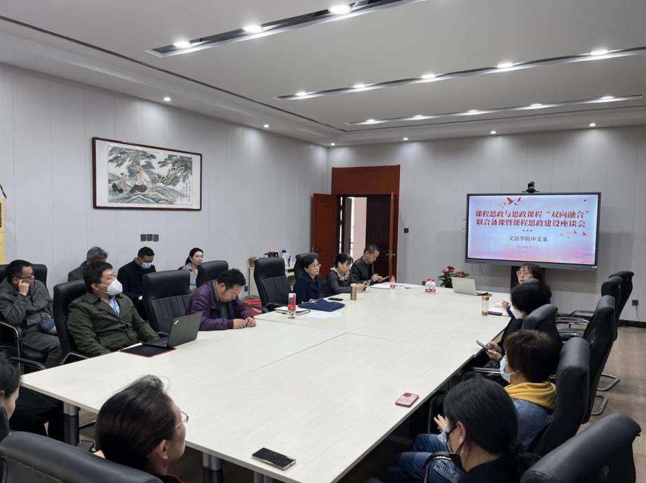 2023年4月27日下午,中文系和汉语国际教育系在人文馆101召开课程思政与思政课程“双向融合”联合备课暨课程思政建设座谈会。会议由系主任徐敏老师主持,特约马克思主义公司王彦霞老师指导,全体中文系教师和汉语国际教育系教师参加了此次集体备课。