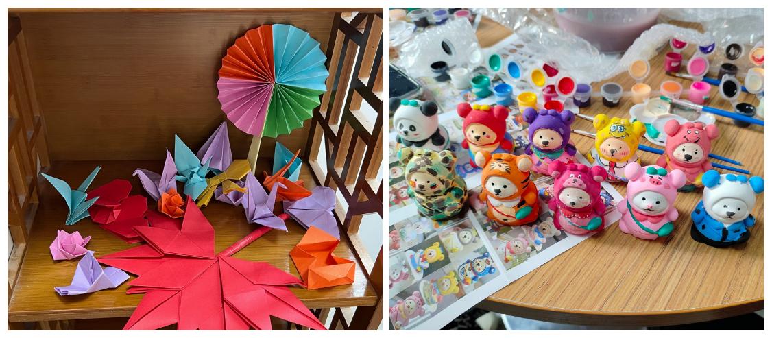 本次手工活动类型为“彩色折纸”和“石膏涂鸦”。活动开始,主持人详细地向同学们讲解制作本次手工作品的各个步骤,并播放相关视频供同学们参考。随后一张张平面的纸在同学们手中变成了蝴蝶、枫叶、千纸鹤、花朵、爱心……折纸环节结束后,石膏娃娃到场,同学们纷纷拿起画笔、蘸上颜料,用色彩抒写自己的内心世界。奇异与有趣交织,生活与想象碰撞,同学们用双手创造出独一无二的手工作品。活动过程中,同学们放下手机,回归平静,放松心情,用艺术的方式为心灵减压、为心灵赋能。