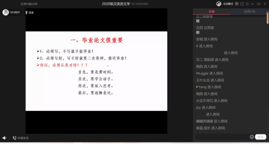 2024年3月6日晚20:00,中文系以QQ群课堂的方式举办2020级汉语言文学专业毕业论文专题讲座,2020级汉语言文学专业全体员工参加了此次讲座。
