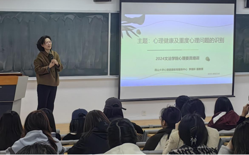 李靖环老师以“心理健康及重度心理问题的识别”为题,从心理危机干预的类型、识别、处理和资源利用四个方面介绍了心理委员及寝室长的工作职责以及在日常工作中需要重点关注的对象。随后,李老师与在场的同学进行互动,针对大家在工作中遇到的实际困难,提供具体指导,强化了心理委员和寝室长处理心理问题的意识与能力。