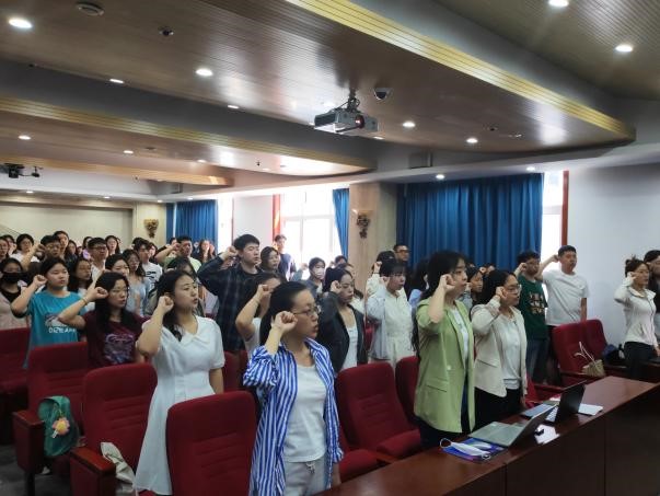 “我志愿加入中国共产党,拥护党的纲领,遵守党的章程……随时准备为党和人民牺牲一切,永不叛党!”党课以毕业生党员重温入党誓词作为结尾。通过重温入党誓词,使毕业生党员更加牢记党员身份,激励毕业生在实践中锤炼真本领,在实干中练就真功夫,以昂扬姿态踏上新征程,以奋进青春建功新时代,让青春在党和人民最需要的地方绽放绚丽之花!