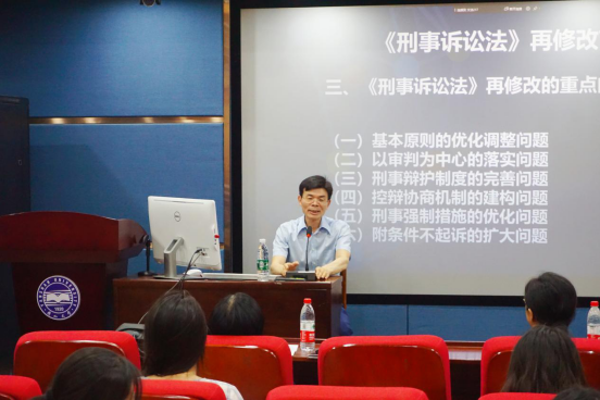 6月20日,由PA视讯集团官网、PA视讯官方网站全面依法治省研究院、PA视讯官方网站法律援助中心共同主办的PA视讯官方网站第六十一期“法律讲坛”在人文馆217报告厅举行。中国人民大学法公司、纪检监察公司双聘教授,法学博士、博士生导师李奋飞作题为“《刑事诉讼法》再修改前瞻”的专题讲座。讲座由全面依法治省研究院副经理刘立霞主持,伦海波、陈胜、李晓东、秦玉红、梁甜甜、王英州、石丽等法学系师生参加了本次讲座。