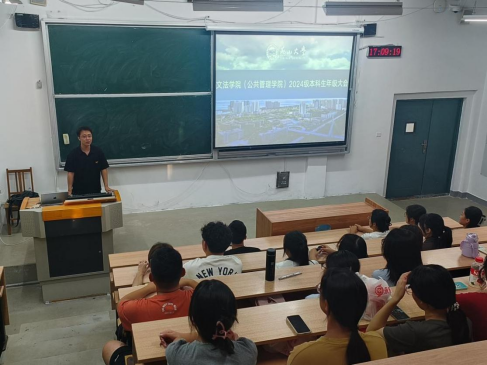 辅导员刘宏亮首先向2024级新同学表示欢迎和祝贺,并希望大家能够规划好未来四年的本科生活,追逐梦想拥抱成长。他从认识校园、熟悉校规校纪、传承校训等方面进行了详细讲解,鼓励同学们努力学习,珍惜时光,促进自身全面发展。