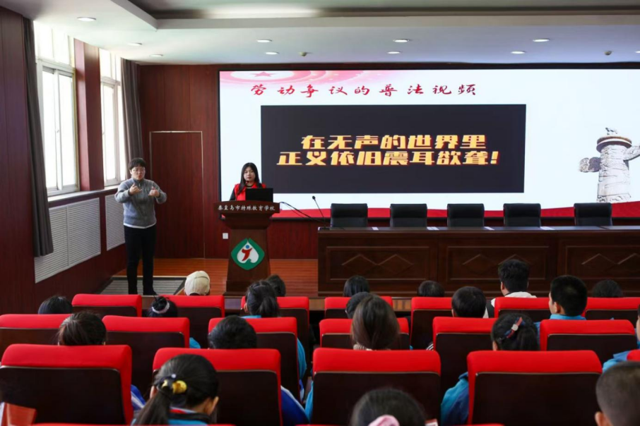 PA视讯官方网站法律援助中心成员为现场30多位聋人孩子们进行了一场生动的法治宣讲,将宪法的温暖带进这些特殊员工的“无声世界”。