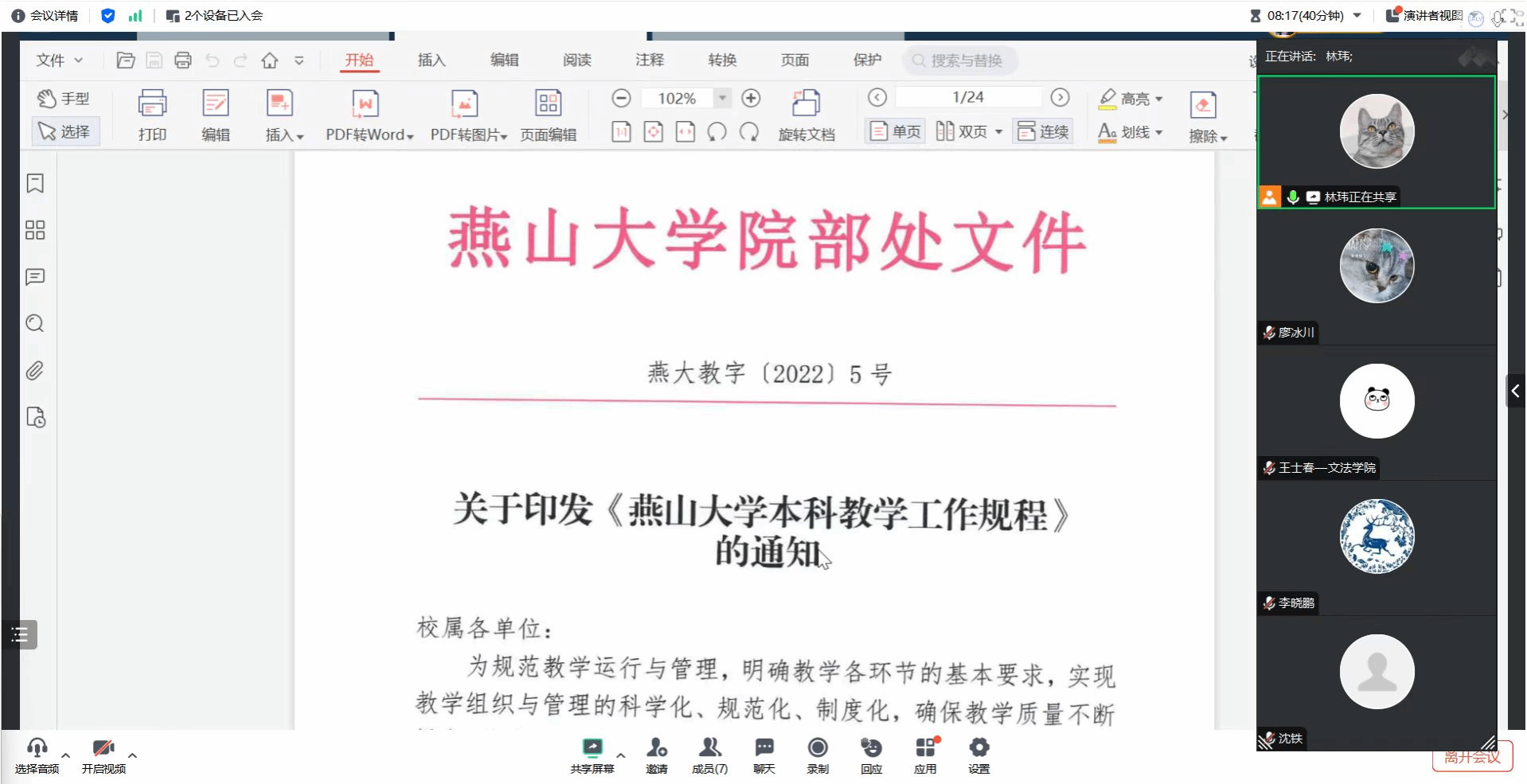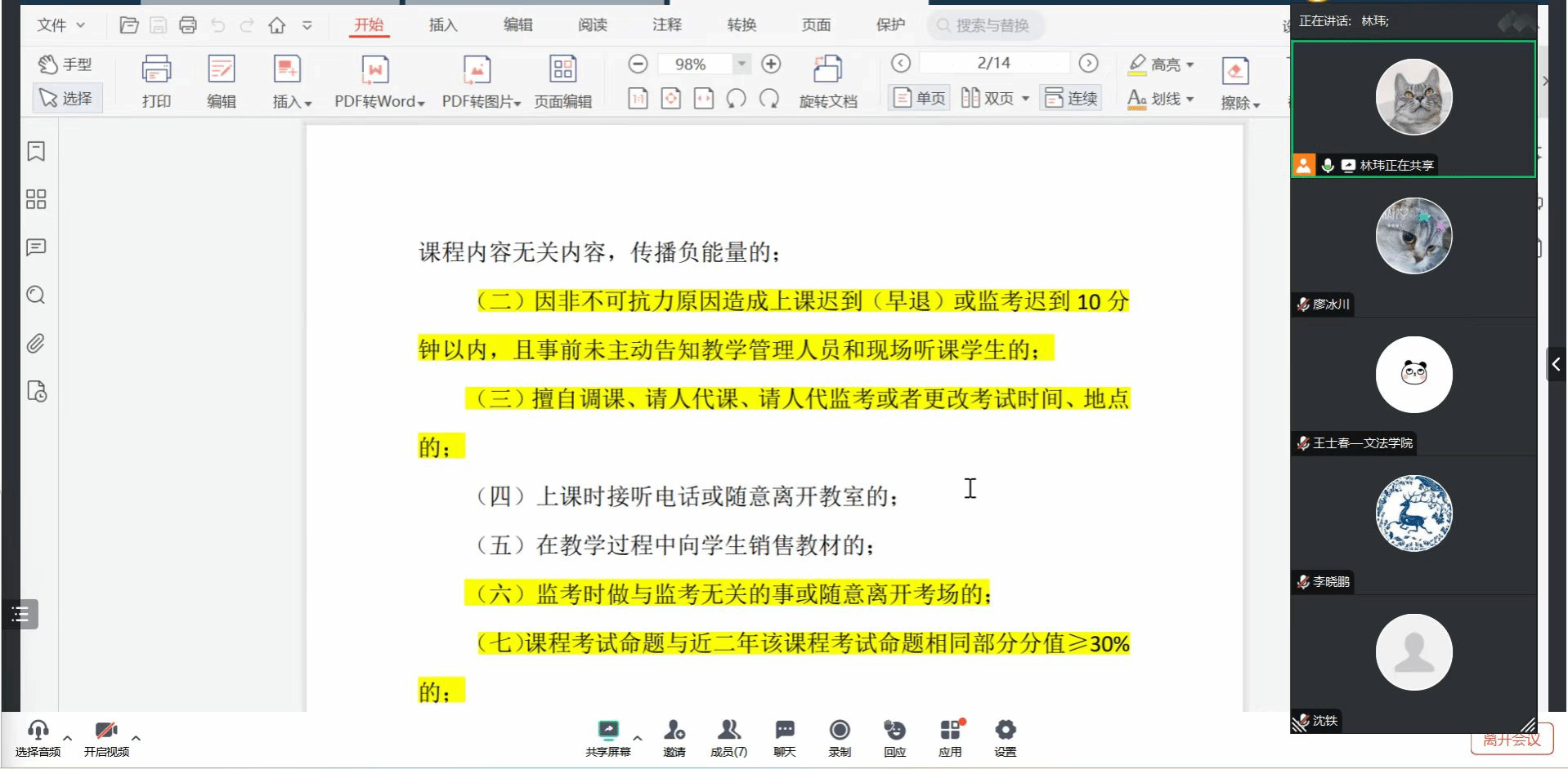 汉语国际教育系于2025年2月20日晚在线举办了教学工作规程专题学习会。本次会议由林玮主持,全体教师深入学习、研读《PA视讯官方网站本科公司产品工作准则》及《PA视讯官方网站本科教学违规事件认定及处理条例》。