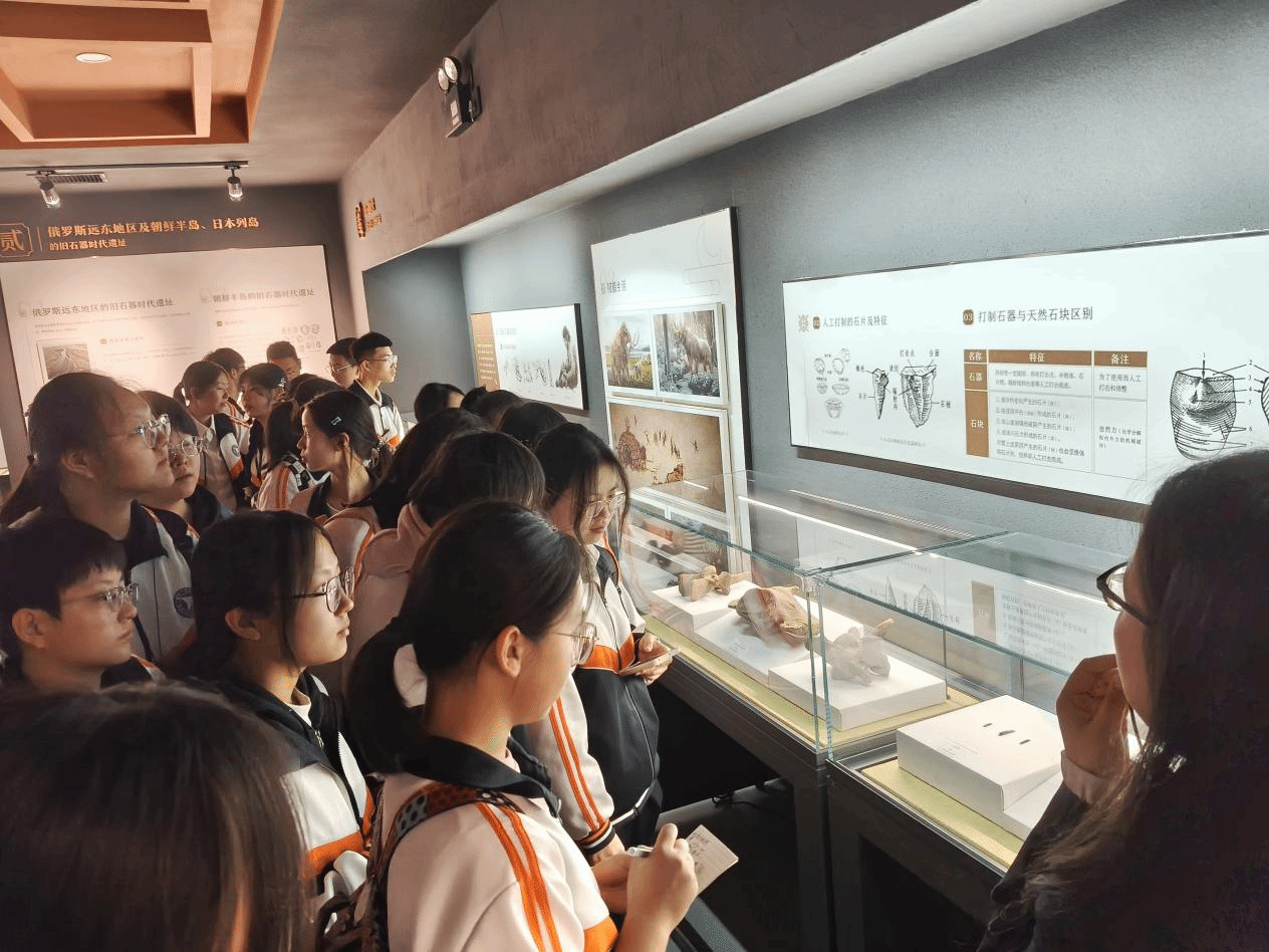 随后,师生们来到国家二级博物馆、河北十佳博物馆——东北亚古丝路文明博物馆。讲解员深入浅出地介绍了东北亚古丝路文明的起源、发展和影响,同学们仿佛穿越时空,置身于古代的贸易盛景之中,书本上的知识顿时“活”了起来。