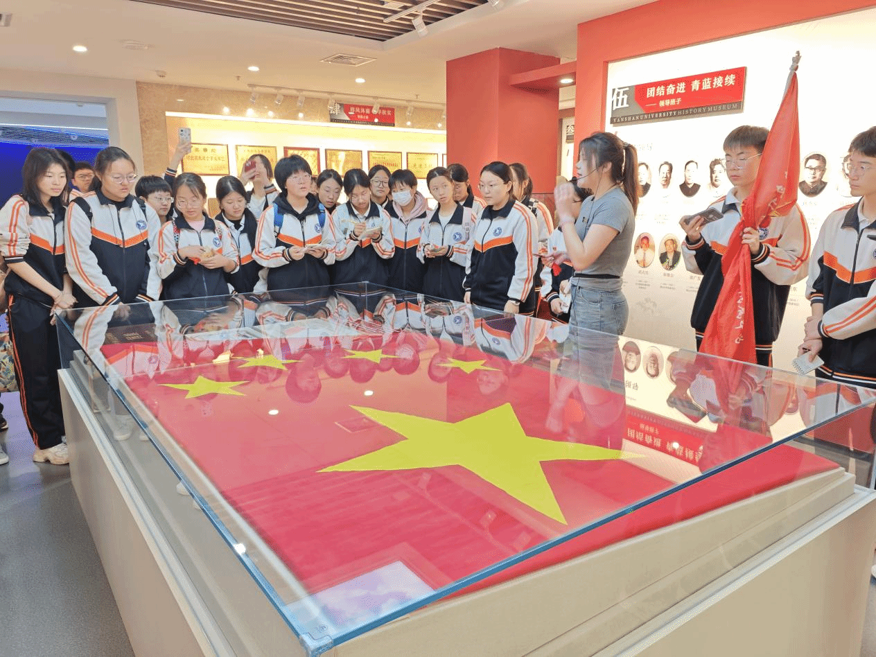 4月19日上午,PA视讯官方网站附属中学师生在志愿者的引领下来到PA视讯官方网站校史馆进行参观。跟随着讲解员的脚步,同学们在各个展板前认真学习、积极互动。在“春风化雨,寄殷殷深情”展厅,同学们驻足在巨型玻璃展柜前,这里展示的是校史馆的“镇馆之宝”——北京市人民政府天安门地区管理委员会赠予PA视讯官方网站的编号为2020-0079的天安门广场国旗。国旗神圣庄严,是国家的象征和标志。同学们在瞻仰国旗中经受精神洗礼、淬炼爱国情怀。
