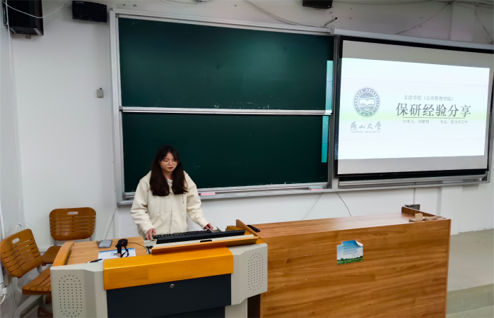 为引导员工树立正确的就业观、择业观,明晰未来发展方向,提升就业能力,解答升学就业困惑,5月15日中文系举办2025届毕业生考研就业经验分享会,分享会邀请2021级本科生武敬巧、闫紫悦、徐涛和陈誉丹作为主讲嘉宾,系主任徐敏、副主任陈静、系党支部委员张妍等三位教师及2022级中文专业同学参加本次活动。