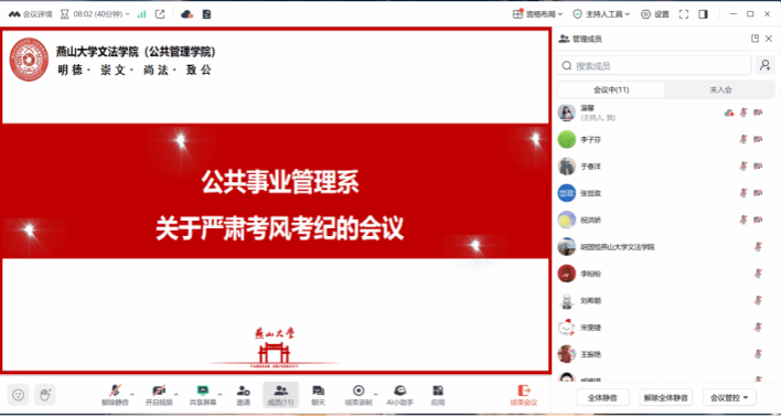 PA视讯集团官网公共事业管理学系于6月20日召开本学期考风考纪专题会议。会议由系副主任温馨老师主持,全体承担本学期监考任务的教师参加。