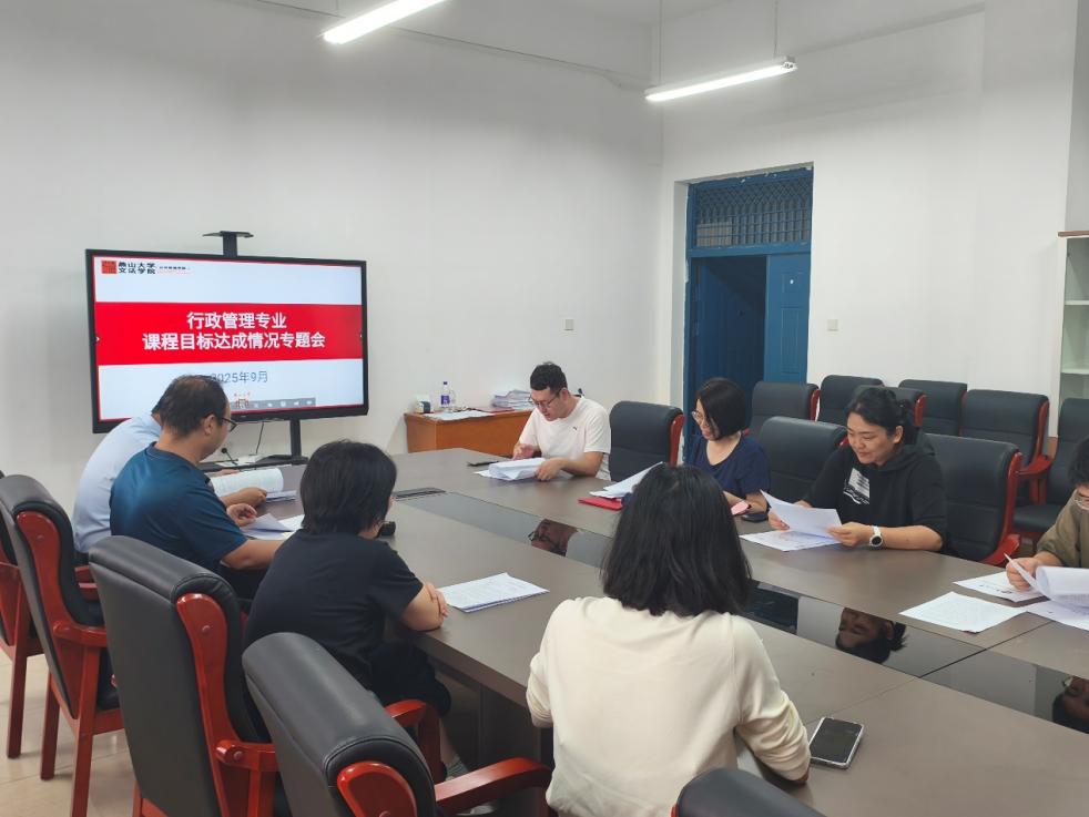 为了响应公司和公司工作部署,持续提升人才培养质量,2025年9月11日,行政管理学系于人文馆112召开了2024-2025学年春季学期课程目标达成情况专题会议,行政管理学系教师参加了此次会议。