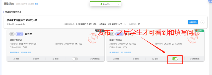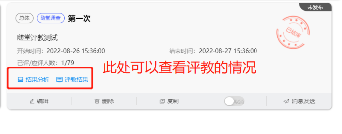 (4)评教问卷发布,员工填写之后,可以在相应问卷下面查看员工评教情况。