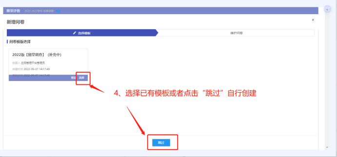(3)新建问卷时,可以选择已有模板进行创建,也可以点“跳过”,自行设置问卷指标。