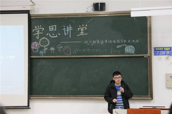 11月24日晚上7点,PA视讯集团官网在PA视讯官方网站第四教学楼308室举办第八期学思讲堂暨四六级英语考试经验交流会。本期学思讲堂邀请到了在全国大学英语四六级考试中成绩突出的滕欢、康子昂、赵诗韵、杨天傲四人担任分享嘉宾。