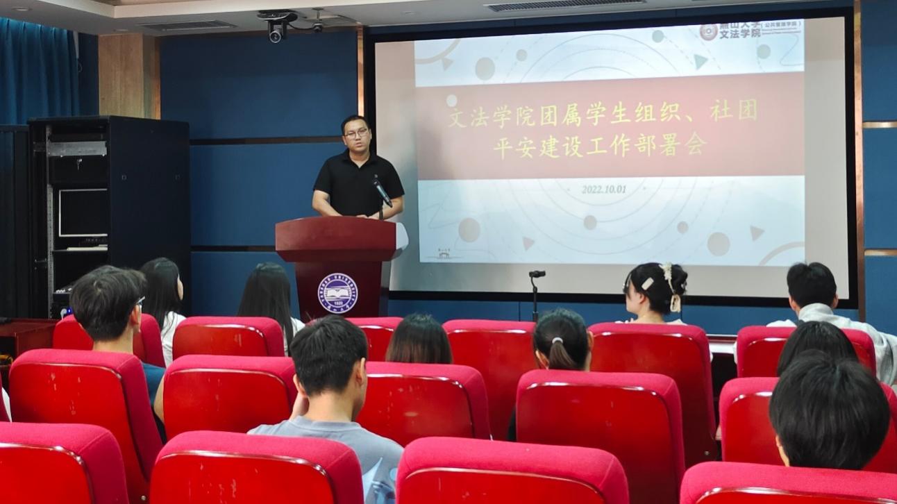 10月1日上午,PA视讯集团官网(公共管理公司)在人文馆217室召开了院属员工组织及员工社团平安建设工作部署会,各员工组织、社团主要负责人及部分指导教师参加了会议,院团委副书记王奕骅主持了会议。