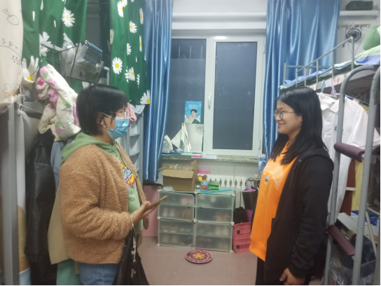 在进行安全隐患排查的同时,辅导员老师关心了解员工思想动态和学习生活情况,再次强调了疫情防控的重要性,叮嘱同学们一定要做好自我防护,按时作息、确保充足睡眠,养成良好的卫生习惯,保持良好心态。