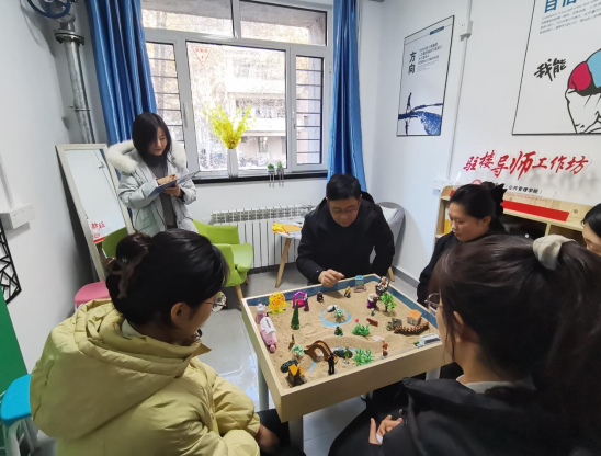 活动过程中,张玉华老师首先介绍了活动规则,带领大家依次拿取沙盘模具放入沙盘中,共同搭建了一个完整美观的沙盘,并对摆放过程进行了详细的记录。之后,大家对自己所摆放的模具进行解读,表达自己在搭建沙盘过程中的心灵感受及评价。最后,张玉华老师对大家所搭建的沙盘进行了深入剖析与解读,并对整个心理沙盘活动进行了全面总结。