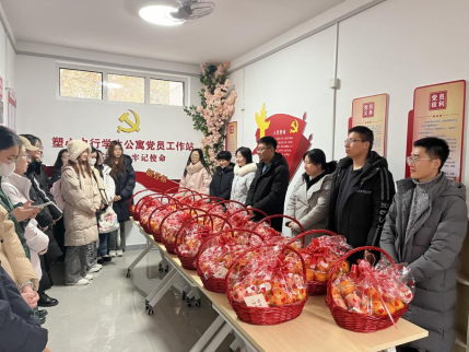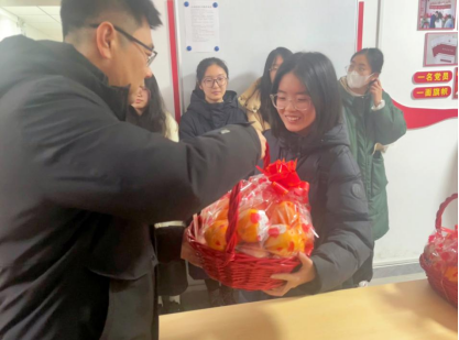 交流过后,公司领导和辅导员老师代表公司为全体考研同学送上精心准备的果篮,里面包含着新鲜的橙子和苹果,寓意心想事“橙”、“苹”安上岸。