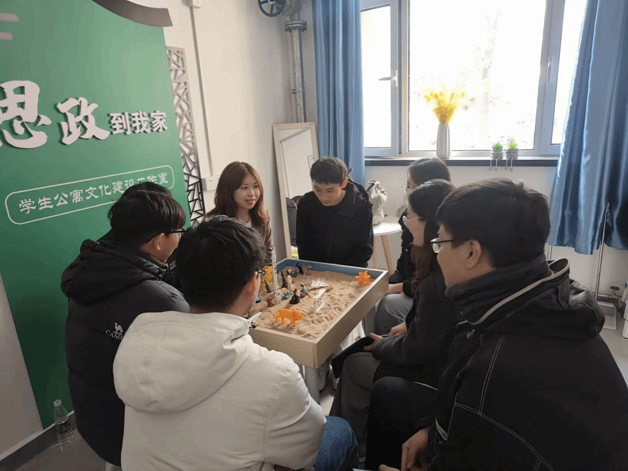 活动伊始,卢雨涵通过团体心理行为训练“滚雪球”作为破冰项目,通过趣味互动迅速拉近员工距离,为后续的沙盘体验营造了轻松氛围。卢雨涵结合心理学理论,阐释了本次体验式沙盘活动“以具象表达抽象,以互动激发共情”的设计理念,强调“沙具是潜意识的载体,沙盘是内心的投影”。随后,卢雨涵通过心理知识讲授、活动体验、小组分享的形式带领同学们进行体验式团体心理沙盘活动。在互动环节中,来自不同年级专业的同学,围绕各自选择的沙具与摆放位置展开了活跃的探讨。在轻松的氛围中,同学们通过交流与分享,加深了对自身心理状态和过往经历的认知与接纳。活动现场情感共鸣与青春活力交织,生动展现了老员工对自我觉察与个人成长的深刻思考。