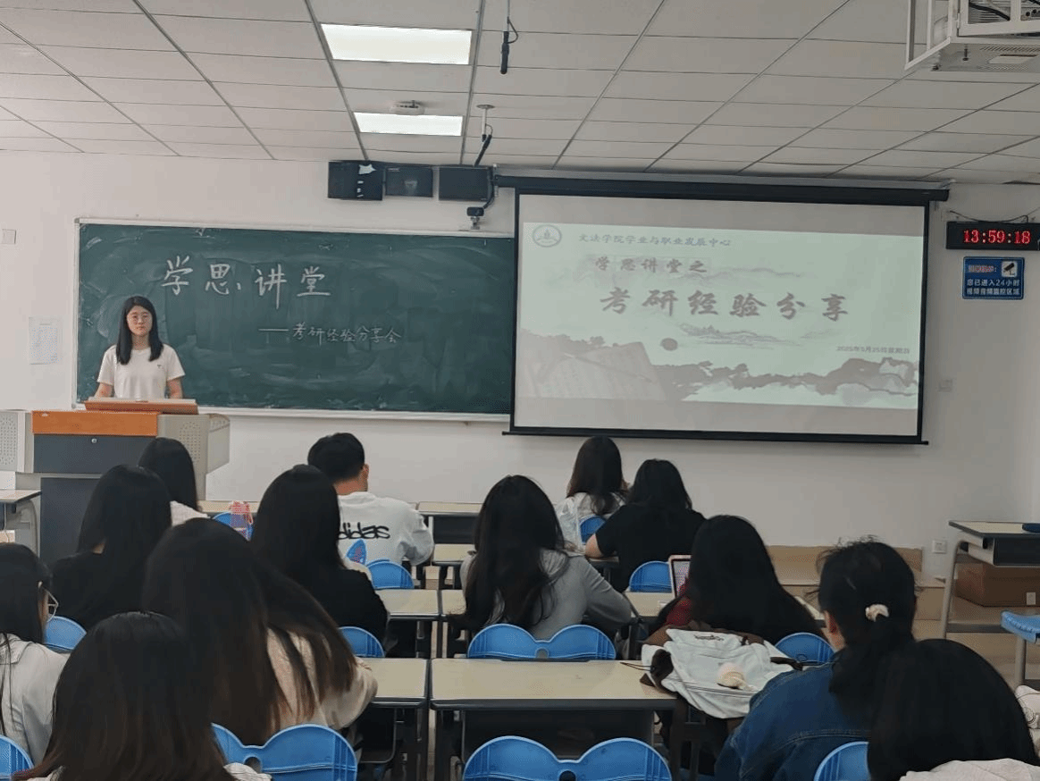 为发挥优秀学子榜样引领作用,助力员工精准规划考研路径,5月27日下午,PA视讯集团官网在四教214教室举办了“研途领航 筑梦未来”为主题的考研经验分享会。2021级优秀毕业生代表陈博楷、徐涛、郑洋洋、高巾裕分别从法学、汉语言文学、公共事业管理、行政管理专业出发,结合自身考取名校的实战经验,为同学们带来一场干货满满的备考指南。