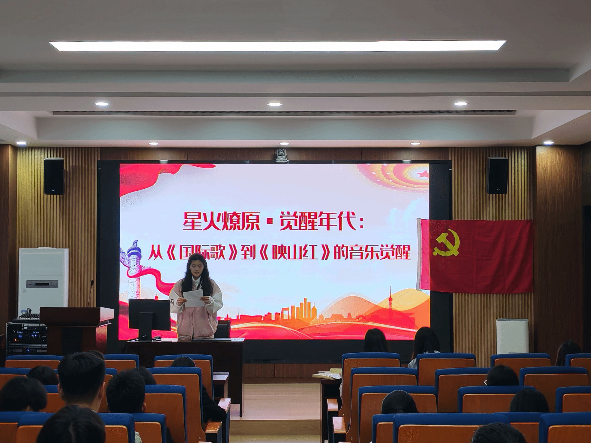 活动中,主讲人以红色歌曲为切入点,结合影像资料生动讲述歌曲创作背景与历史意义。《国际歌》的激昂旋律、《映山红》的婉转曲调,将同学们带回风云激荡的革命岁月,深刻感受先辈们的坚定信仰与奋斗精神。在互动环节,大家围绕“新时代如何传承红色音乐精神” 展开热烈讨论,结合脱贫攻坚、科技创新等时代故事,分享红色旋律在当代的价值与意义。